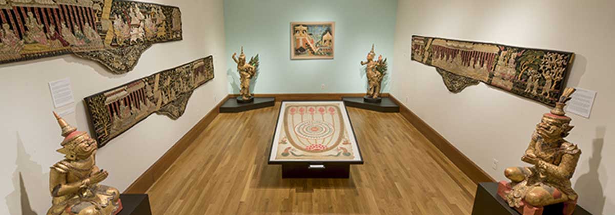 The Burma Art Collections, including numerous items from the Konrad and Sarah Bekker Collection, recently on view at the Art of Burma, is located in the NIU Art Museum, where selections from the permanent collection are exhibited on a continuing basis. The Burma Music Collections are also available at the Center and at the Music Library at NIU.