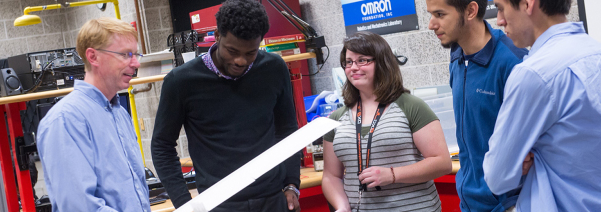 Our program in mechanical engineering will provide you with a strong foundation in solid mechanics, dynamics and controls, fluid mechanics, heat and mass transfer, manufacturing and the conversion of energy into useful work. You will also have a chance to become familiar with robotics and mechatronics, as well as computer-aided design/manufacturing (CAD/CAM), including the software engineers use on the job, such as Creo, ANSYS, MatLAB and MathCAD.