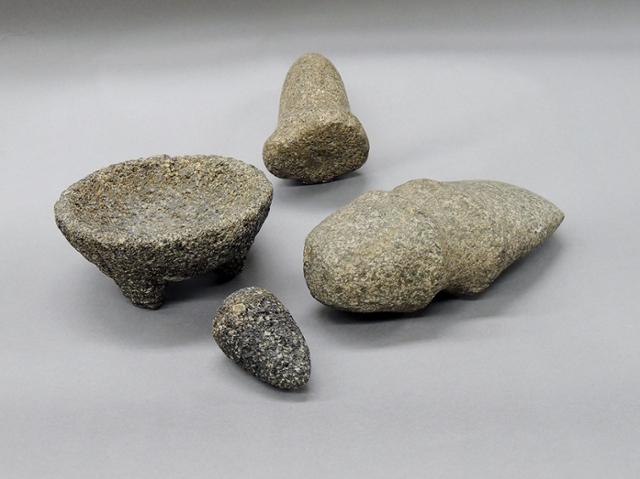 The Archaeology Collections include over 13,000 objects from the Americas. The majority of the objects in this collection are unprovenienced lithic materials from the American Bottom. Collected from archaeological sites such as temporary and seasonal camps, the lithic material gives evidence of the technological choices people made and how such implements were used in practice. Examples include stone hoes, axes, spear and arrow points and chunky stones.