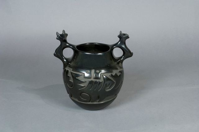 Black-on-Black Pot. Made by Madeline Naranjo. Santa Clara Pueblo People, Southwest United States, 20th Century. Materials: Ceramic. Gift of Kenneth Honea.