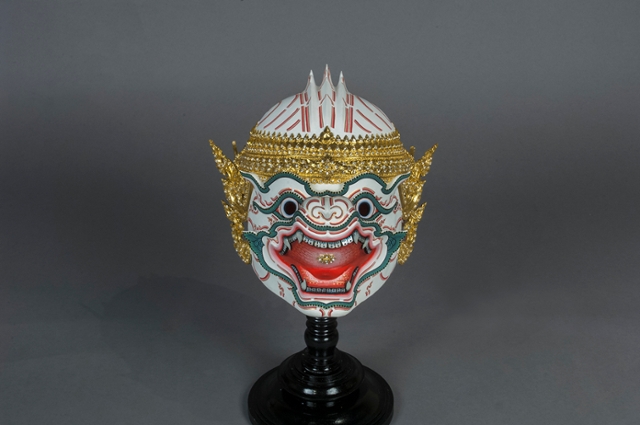 Hanuman Khon Mask, Thailand, 2014. Materials: Paper mache, gold leaf, crystals and mirror tiles. Gift of Her Royal Highness, Princess Maha Chakri Sirindhorn.