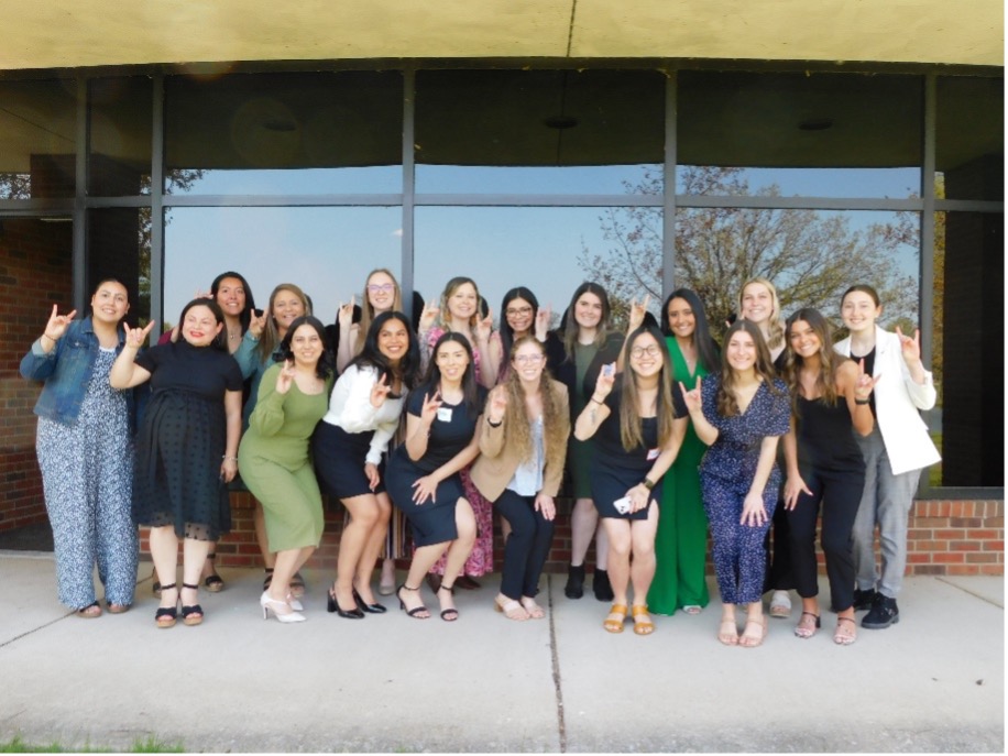 Members of a PLEDGE Elementary Education cohort gathered in early May outside Elgin Community College to celebrate their upcoming NIU graduation. They completed all NIU coursework at ECC and all clinical and student-teaching requirements in Elgin-area schools.
