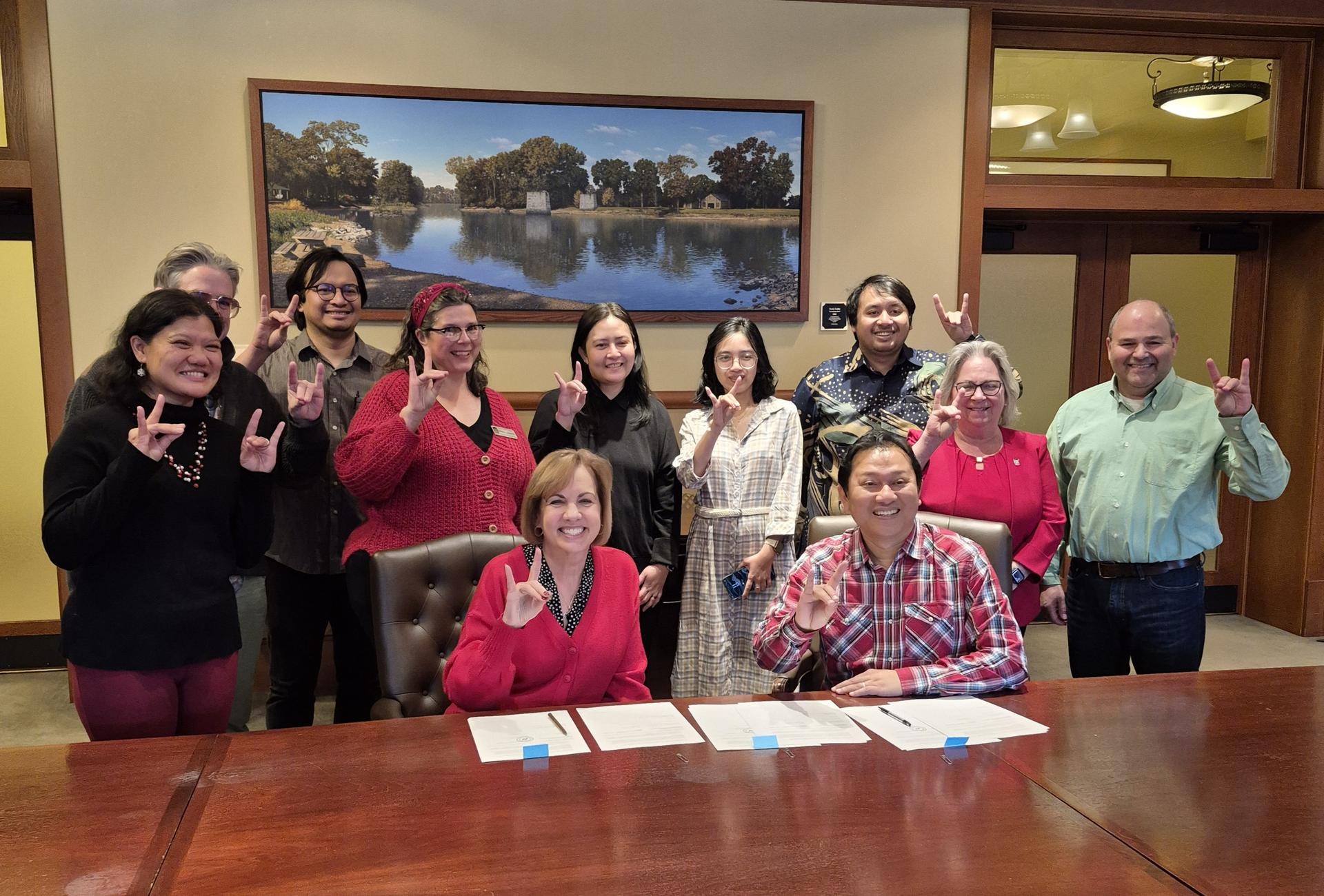 On January 16, the Division of International Affairs and the Center for Southeast Asian Studies (CSEAS) hosted a signing ceremony in Altgeld Hall to formalize first-level MOUs with partners in Indonesia. Executive Vice President and Provost Laurie Elish-Piper signed the agreements with Dwi A. Yuliantoro, chair of the School of Government and Public Policy and representative of Nusa Widyantara.